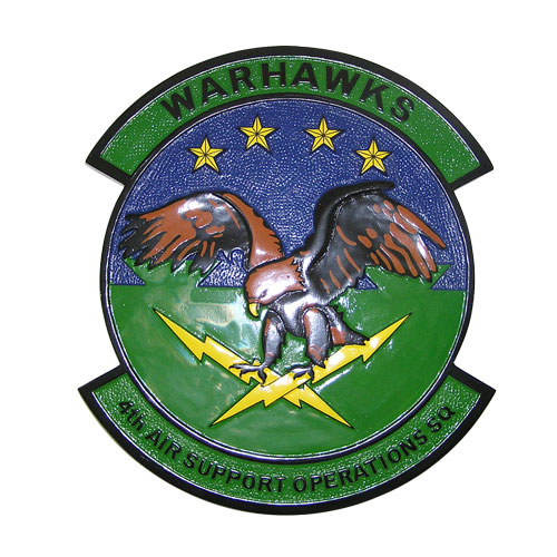 Made from solid mahogany this custom made United States Air Force (USAF) 4th Air Operations SQ wooden plaque is hand carved and finished by our expert craftsmen. The mahogany is cured and treated at our own factory to avoid warping and twisting over the years and a special keyhole slot is recessed into the rear to ensure a flush fitting on ay wall surface. Our custom plaques are made of the highest quality solid mahogany and are perfect for office wall hangings, podiums and unique gifts.