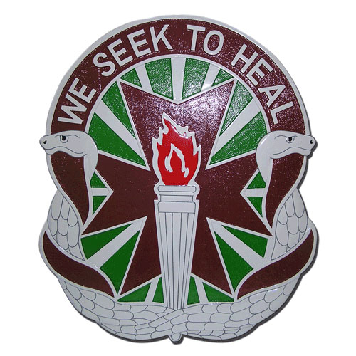 Made from solid mahogany this We Seek To Heal wooden seal and logo emblem is hand carved and finished by our expert craftsmen. The mahogany is cured and treated at our own factory to avoid warping and twisting over the years and a special keyhole slot is recessed into the rear to ensure a flush fitting on any wall surface.